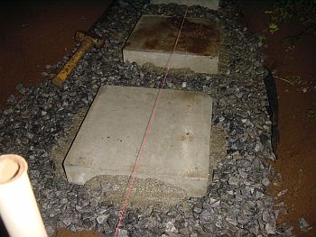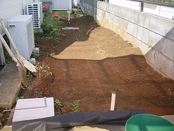 これではイカンと気を取り直し、地面の整地及び、レベル出し用の水糸を張る。 |