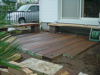 何とかベンチが完成したので続いてペイピングに入る。 今回ペイピングに使用したのはベンチの天板同様、イペのハーフ枕木である。 ハーフとはいえ35KGの超ヘビー級の素材故に、埋め込み&レベル出しには一苦労。 水を吸ったら最悪で、後半は本当に記憶を失った。 ちなみにイペ枕木は山梨県にある木工ランドの通販で購入した。 自宅へは佐川運送の直送便で届けてもらえるのでリーズナブル&非常に便利。オススメです。 |