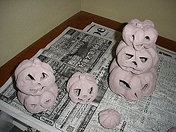 近所のジョイフル本田に買い物に行った時に監督が「ハロウィーングッズを買いたい」とか言い出した。 数年前までは「ハロウィーンって何?」って位の物だったのに関連グッズの売り場の広さにはマジで驚いた。 そしてグッズの値段にも驚いた・・・高!!! こんなシーズン物のカボチャの化け物のに為に財布が軽くなるのも相当悲しいので、 監督に「こんなん買うくらいだったら七輪陶芸でカボチャの焼き物を作ったら?」と投げかけたらあっさり了承。 実は七輪陶芸は子供の夏休みの宿題で鳩笛を作ってから密かにハマっているのだった。 ・・・で、その製作過程がこの写真群です。 かなり簡単に書いていますが、乾燥不十分で焼きの途中で水蒸気爆発したものも数点あったりします(汗) とりあえず焼き物用の粘土でカボチャを作り、2〜3週間の乾燥過程を経て焼きに入ります。 粘土の厚さは可能な限り薄く作るのが乾燥を速め、爆発を防ぐコツ。 粘土のブランド(産地)は沢山あってよくわかりませんが、焼き上がりで収縮の少ない物の方が良さそうです。 七輪は火がボーボー出るうえに相当熱くなるので広い場所に置きましょう。通行人が通る場所ではツライです。 素焼きだけでも冷えるまでに6時間位かかりますので見張りも大変。時間には余裕を持って。 出来上がったカボチャの中にロウソクを入れたらなかなかいい感じに光ってます。 監督から「シーズンインまでにあと10個位作って」とのオーダーが入り、しばらくはドロ遊びが続きそうです(^^;) なお、七輪陶芸については詳しいHPが沢山あるのでサーチエンジンで調べてくださいね。 |