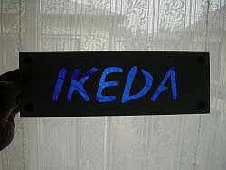 庭をいじるうちにお洒落な表札が欲しくなったが、オーダー品は結構高い。 そこで自分で作ってみることにした。 まずはパソコンでデザインを決定。 3mm厚アルミ板をデザインどおりにジグソー+メタル用ブレードで切り抜く。 もちろん切り始めのポイントには6mmドリルで穴を明けた。 傷にならないようにジグソーは表札裏面側から使用するのがポイント。 よってパソコンのデザインは反転させておく必要がある。 また同時におもて面もガムテープで養生しておかないと傷だらけになるので注意。 切抜きが終わったら取り付け用の脚をボルトで作る。 脚はステンレスボルトで作らないと錆びて門がもらい錆だらけになるので注意。 (アルミとステンレスの組み合わせでは イオン化傾向の関係でアルミ板のほうがボロボロになるかもしれませんが・・・) ここでは更にステンドグラス用のガラスをSUPER−Xで貼り付けて 複合素材のハイブリット表札としてみた。 |