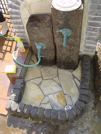 おっと!水受け面が傾斜しているのでレンガの水平を確認しないとね。 固まり始めてから気づきました。危ない危ない。 続いてジェラストーンを貼りますが、さすがにこの作業にはすっかり慣れました。 残った破片を見るだけで何となく配置がイメージできるところまできました。 こうなったら家の塀もジェラ貼りにしようかな? |