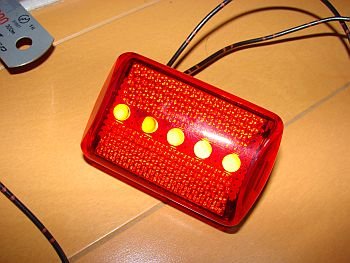 分解するとこんな感じ。LED5灯仕様である。 不要な乾電池のホルダーパーツ&基盤は取っ払い、LED&抵抗&汎用プリント基板等を別途購入し、12V対応の新たな基盤を新作した。 電気知識は専門外なので、ここでは基盤の画像は掲載しません。 これ系のWEBサイトは多数あるので情報はそちらからどうぞ。 |
