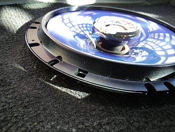 正月の特売で買ってきたパナソニック製17cmの2WAYスピーカー。 試しにはめてみると、全然浮いてます。 |