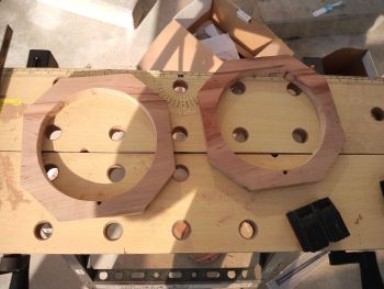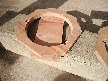 丸ノコ、ジグソー、ドリル、(全て電動)を駆使して、切り出してみた。 さすがは樫の木、硬かったです。 |