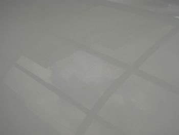 1週間後、周囲をマスキングしてサンディングブロックに巻きつけた耐水サンドペーパーで削り落とす。1000番からスタートして1500番→2000番と仕上げていき、コンパウンドを掛けるとご覧の状態に。 もちろん色目は違うが、ルーフとフラットになった。 |