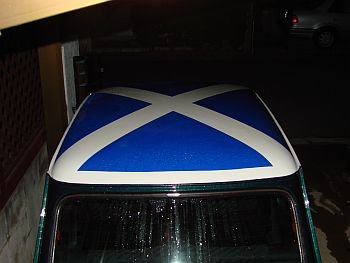 ローバーミニのルーフデカールと言えばユニオンジャックが定番であるが、少数派のスコットランド国旗(セント