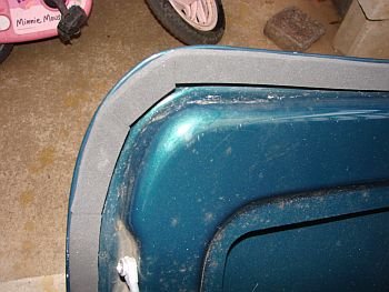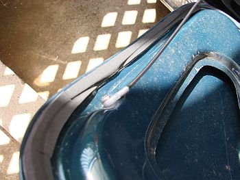 これが問題のゴムパッキン。微妙に歪んでヘタッてます。 トランク上側のパッキンは地面に対して水平な部分が多いので水が溜まりやすい。洗車時にも水がなかなか流れていかないのを確認。 雨漏りはトランクのモールを交換すればおそらく直るのだが、これがまた結構良い値段である。また、凹んだトランクを交換する日も遠くないと思われるので、恒久的な応急処置をすることに。 |