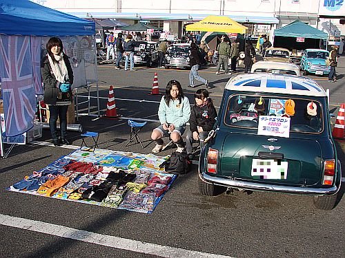 2009/1/12 日産横浜スタジアムで開催されたニューイヤーミーティングのフリーマーケットに参加してきました。 2〜300台くらいのminiが集まりました。 夜なべして作ったタンクエプロン20個があっという間に完売してしまってビックリです。 それよりも大勢のminiオーナーさん達と話が出来てとっても楽しかったです。 |