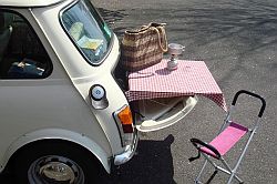 | N妻さんのミニ。 この前の休みに、エプロンをつけて近所のパン屋まで出かけてきました。その時に撮った写真を何枚か送ります。
