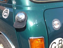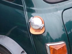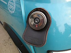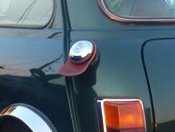 | H江さんのミニ。 アストンタイプのガスキャップカバー(純正ガスキャップの上からかぶせるタイプの物)をつけても問題なく使えております。 大きさ、反り具合どちらをとっても大変気に入っております。これから又革独特の味が出てくるのを楽しみにしています。 |