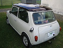 | A比奈さんのミニ。 やっと写真を撮りましたので送らせて頂きます。 クルマ自体はまだまだな状態ですが,以前の塩ビエプロンより数段,格が上がった様な気がしますね(笑) とても気にいっておりますよ?? |