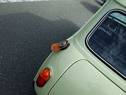 | 「穴が小さく感じましたが、付けたらバッチリ。反り具合も最高です。」とのK藤さんのミニ。車体のヤレ具合がいいですね! | ||