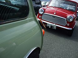 | ご夫婦で2台のminiにお乗りのイシグチさん。イエローのラインがいかす! もう一台はどこに? | ||