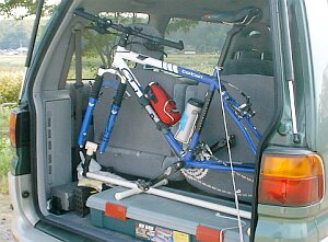 | 自転車のサイズ&積載する車に合わせてこんな感じに自立するフレームを合体すると完成! | Dr.SASAKIの車の場合にはこんな感じに・・・ |