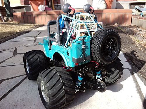 2012/1/29タミヤGP 横浜でドレスアップ賞GET! ラジコンマガジン2012年2月号に掲載されました!! ワイルドウイリーの箱(1/10サイズ)は全部で12個載っています。 ノーマルに対して重量増は500gなので、レースには全く使えませんw |