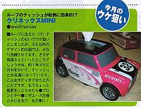 ![]() 2006/10 お台場ミニスポーツ用ボディ- クリネックスレーシングミニ! 風邪ひいて2日間寝込んでティッシュとお友達になっていたら こんなものが出来てしまいました。 意外とカッコイイと思ってしまうのは自分だけか? 2006/10/29タミヤF1GP お台場でコンデレGET! ラジコンマガジン2007年1月号に掲載されました!! |