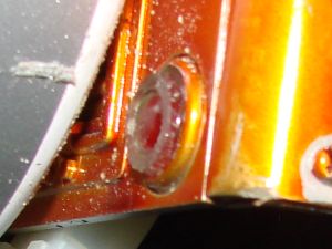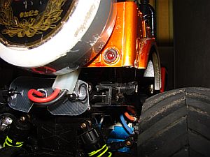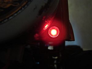 投稿していただいた作品はLEDをそのまま装着の様でしたので、 ここではちょっと工夫してユーロテール風に仕上げています。 ランプユニットの作り方は2cm程度にカットした内径5mmのアクリルパイプに 赤色LEDを差込み、ボンドで固定しただけです。 |
