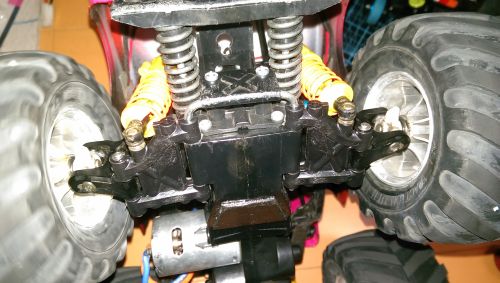 ・・・と言ってもウイリーシャーシ用としての 発売ではありませんが。 右が純正、左が一体式高剛性フロントロアアーム。 |