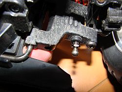 | これを使用することにより、 ステアリングレスポンスが、よりリニアになります。 また樹脂が硬いのでノーマルロアアームでありがちな ピローボール抜け(写真)も起こりにくいです。 |