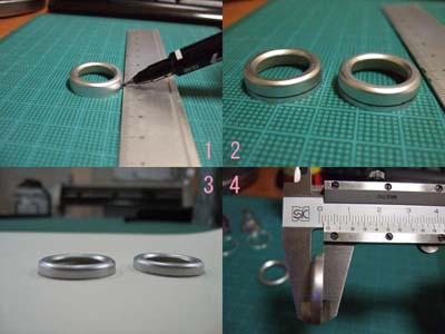 1、 薄型99ライト まずは、丁度よい厚みの物の上にペンを置いてライトの方をクルッと回しカットラインを書きます。(画像1、2) ペーパーの上でライトの方を擦り付ける様にカットラインまで削ります。(画像3) 私の場合3mmまでけずりました。(画像4) 取り付け等は99ライトでGO!と同じです。 |