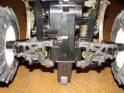 これ以降は小技になりますが、 ワイルドウイリーのギアボックスはワイド仕様にすると 構造的に真ん中が開いてきてしまう欠点があります。 開いた隙間から小砂利が入ってギアがパーになった 苦い経験から何らかの補強パーツを付けておいたほうが ベターと思います。 |