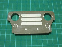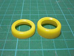 Aライトカバーの削り 99ライトをそのまま装着すると出っ張り過ぎのように 感じるので2mm弱削っています。 ライトハウジング本体と合体したときに、 これがグリルの穴に収まるかを確認しながら行います。 |