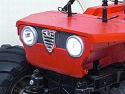 <主な改造点> 1.99ライト 2.ボディをロッククローラ風にアレンジ 3.ロールケイジの形状変更 4.フロントマスクをアルファ・ジュリア顔に変更 5.ドライバーはハミルトン号から移植 |