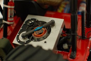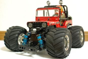 最低地上高10mm、全項240mm(ライト上まで)達成! ボディ下げる為にカットしまくりです。 フェンダー前後カット、バッテリー部カット、ドライバー踵カット〜 ESCファンも安全タンクに!? コミカルさは全くありません(^^ |