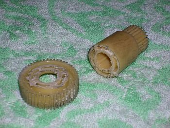 まず、WW2のギヤケースを開け、カウンターギヤ(大)を取り出し、首元で切断します。 (もう元には戻れません。)[画像01] |