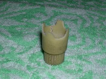 長さを確認したら、二つの隙間を金属用エポキシパテで接着します。 段加工した部分にも、たっぷりパテ盛りします。 この時、センターがずれない為に、外径10ミリのパイプに通しておくといいでしょう。[画像05] パテが完全に硬化したら、余分なパテをヤスリで適当に、整形します。[画像06] |