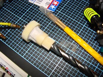 オンロードコンバージョンに採用する為、私(管理人)も作ってみました。 TLのスパーギアのベベル部分はタミヤの薄刃ノコでサクッと切れば簡単。 繋ぎ合わせの芯出しは10mmドリル歯の軸で(笑) 大ギアの縁にパテが付いているとカウンターギアと接触してしまいますので 固まる前にカッターなどで整形しておきましょう。 |