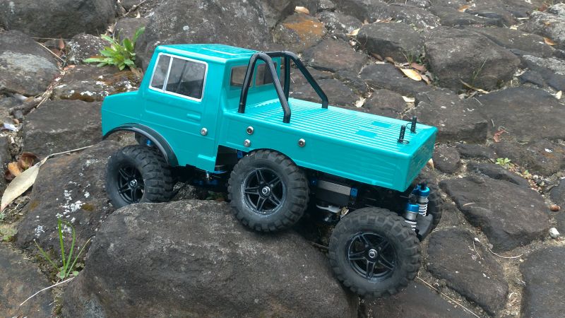 6輪のウニモグ、かっこよくないですか? オリジナルの特殊細工で真ん中のタイヤを過激に動かし、 フロント/リアだけが持ち上がる”スリーナイン現象”を防いでいます。 結局6輪が接地していなければ意味が無いですから。 TPU(ポリウレタン)樹脂でこんなボディーも作っちゃったりしてw 邪道?いや、楽しすぎです。