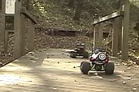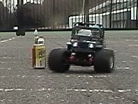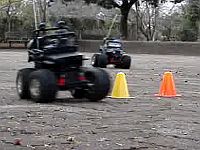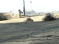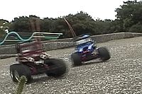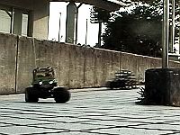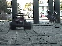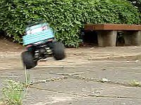 | 狭い場所でも全然平気 (wmv) 公園なんかのちょっとした段差でもご覧の通り。 元々スピードが出ないので狭い場所をぐるぐる走っているだけでも十分楽しめます。このときは足回りがノーマルのフリクションダンパーのままなので跳ねまくりですが,迫力はグー! |