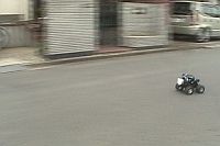 | 直ドリウイリー (wmv) 2005新春朝連ビデオ第3弾です。 砂利路面の駐車場での直ドリ。意外とコケずに走行しています。 コツは直進状態からドリに入る瞬間のみフロント加重でスロットルOFF。ドリ中はパーシャルor全開を保つこと・・・完全にOFFすると速攻でコケます。 あー,砂埃が近所迷惑なので良い子は真似しない様に〜 |