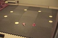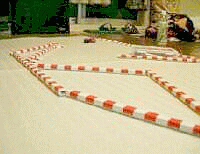 | 自宅ウレタンサーキットのススメ (wmv) ミニッツカップ対策で我が家の和室(8畳)に設置されているウレタンマットでのプラクティスの様子です。ミニッツカップのコースはフェンスがウレタン製で柔らかいのでちょっとでも接触するとノーズがめり込んで即戦線離脱となってしまいます。よって本戦ではインフィールドを正確かつ無難に切り抜ける事がもっとも大事だと思います。 このウレタンマットは2.4mx3.0mとコンパクトですがターンの過程におけるウレタン特有のクセを体験できますのでインフィールドの練習には十分。何より自宅でお馬鹿なセットまで試せるのが最高!コースに行く時間の無い我々サラリーマンにもオススメです。 |