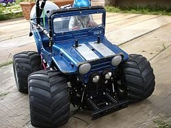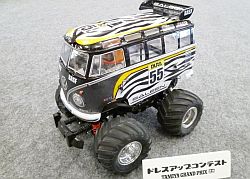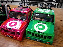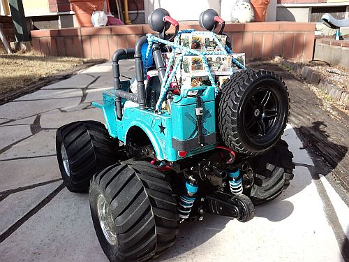 | ワイルドウイリー2のコミカルな楽しさの原点はズバリこのボディーとドライバー人形にあるといえましょう! 何気に公園などで遊んでいると「うわ〜何かちっちゃい人が乗ってる!」とか言って老若男女問わず間違いなく笑ってもらえます。これには気合の入った塗装が絶対条件かと思われますので、”そのままシール貼っただけ”とか”人形なし”なんてことはできるだけ避けましょう。 また初代ワイルドウィリスを知っている我々と同年代の方からは「それ、昔持ってましたよ」とか声を掛けられることも非常に多いです。 そんなキャラクター故に高速コーナリングで吹っ飛ぼうが、ウイリー中にもんどりうってコケようが、コーナーを曲がりきれずドブに落ちようが悲壮感は一切なし!そこにあるのは爆笑のみ! まさに究極の癒し系ラジコンといえましょう! 集団で走れば更にGOOD! この際だからオフミなんかも企画したいですね! |