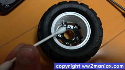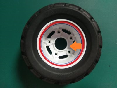 ![]() ホイールのこの面5箇所にシールを貼ります。 |